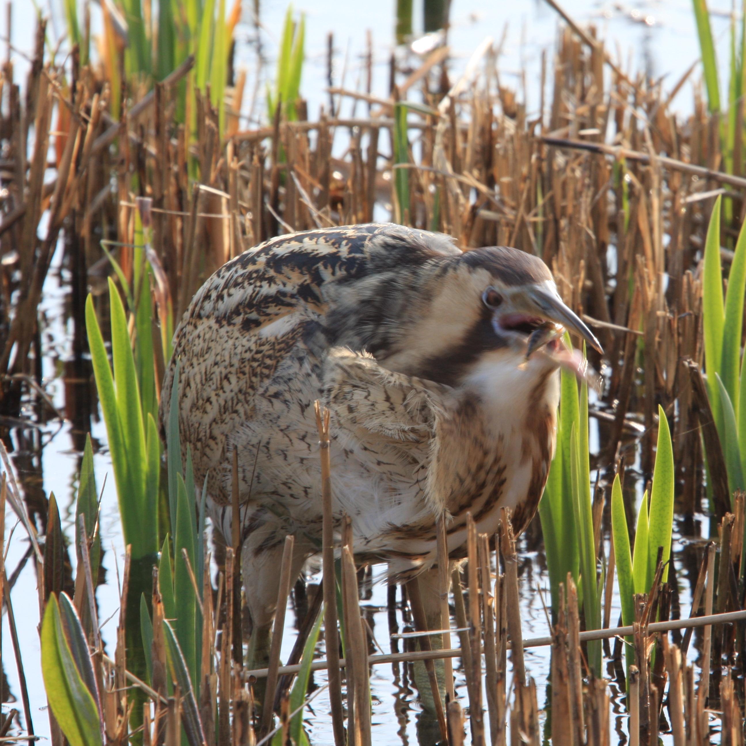 We had some great views of a Bittern which wandered across in front of the Island Hide, ate a stickleback and then started booming in the open.