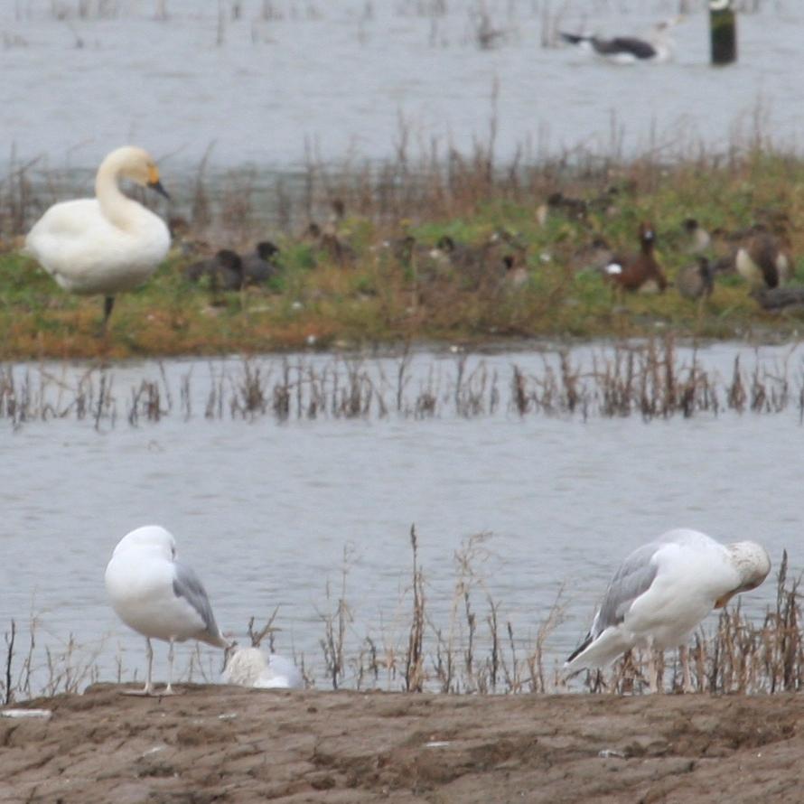 There was also a group of Bewicks Swans on the scrape and someone identified a Caspian Gull, although all the time we were there it sat with its head down which was a bit of a bugger and still no sign of the Great White Egret.